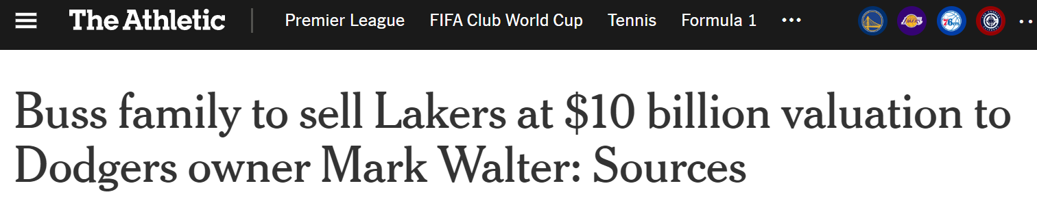 北京时间6月19日,据ESPN名记Shams报道,巴斯家族正与TWGGlobal首席执行官兼董事长马克-沃尔特达成协议,出售湖人的多数股权。这笔交易估值约100亿美元,一位了解谈判情况的消息人士称,交易价值可能最终达到120亿美元,几乎相当于凯尔特人之前卖队价(61亿)的两倍。