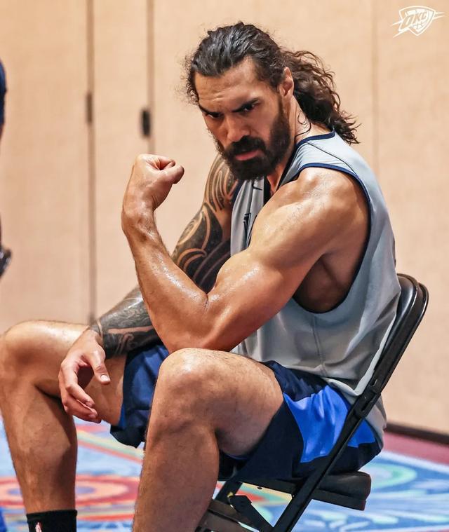 亚当斯虽然面相老,但实际上还不到32岁,13年首轮12顺位被雷霆选中,随即签下四年的新秀合同。在生涯第四年,雷霆就和他提前续约了一份4年1亿的合同,2017年生效。