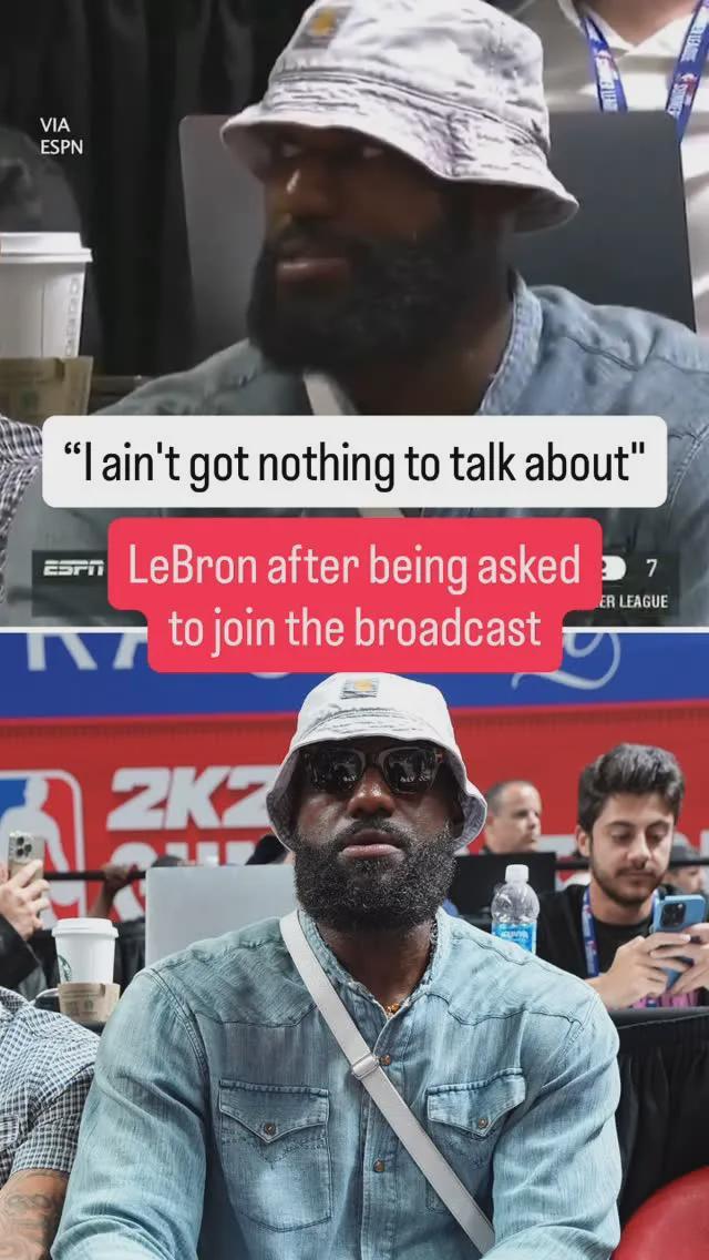 “现在,我在开球前问勒布朗,他是否愿意加入广播讨论一切,他告诉我,引用,'我没什么可说的'”